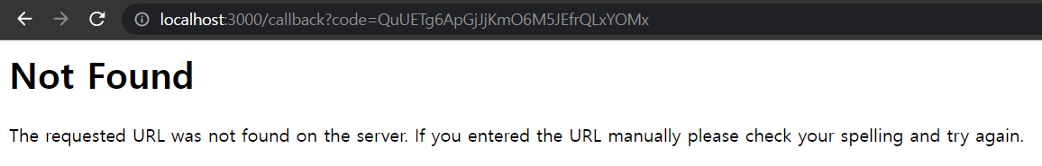 /callback 라우터를 만들어주지 않아 오류가 났군요.. 서버를 바로 업데이트 해볼게요. 인가 코드를 받았기 때문에 이젠 토큰을 얻을 차례입니다.