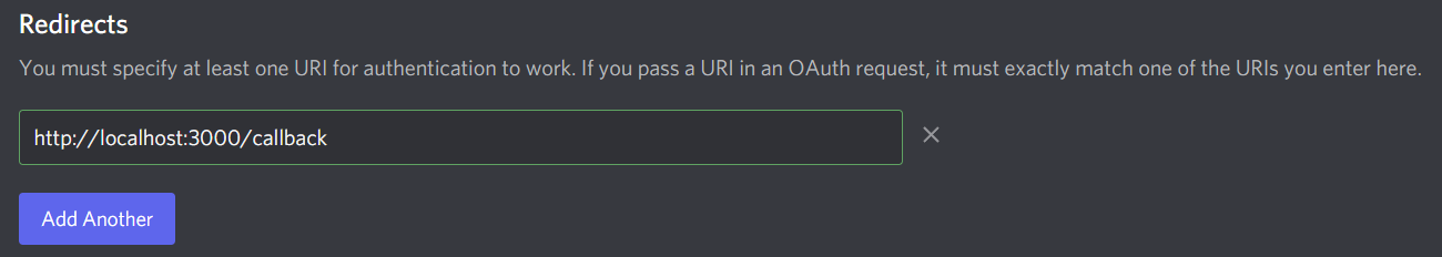 Add Redirect 를 눌러주고, 우리가 아까 설정한 http://localhost:3000/callback 로 설정해줄게요.